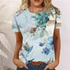 Summer Women's round neck temperament elegant t-shirt breathable short-sleeved floral pattern top loose casual ladies t-shirt