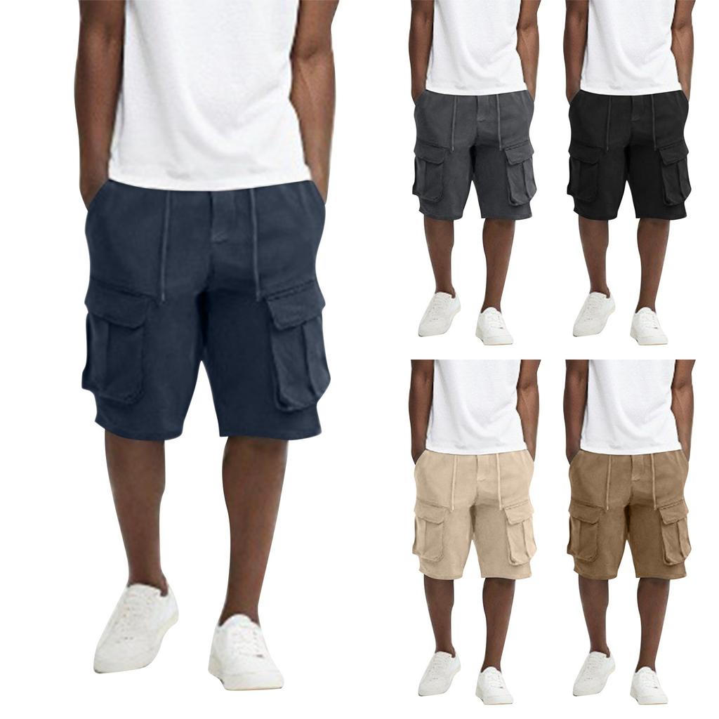 Pánské letní jednobarevné ležérní sportovní prodyšné šortky s více kapsami a rychleschnoucí