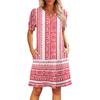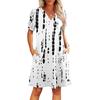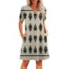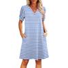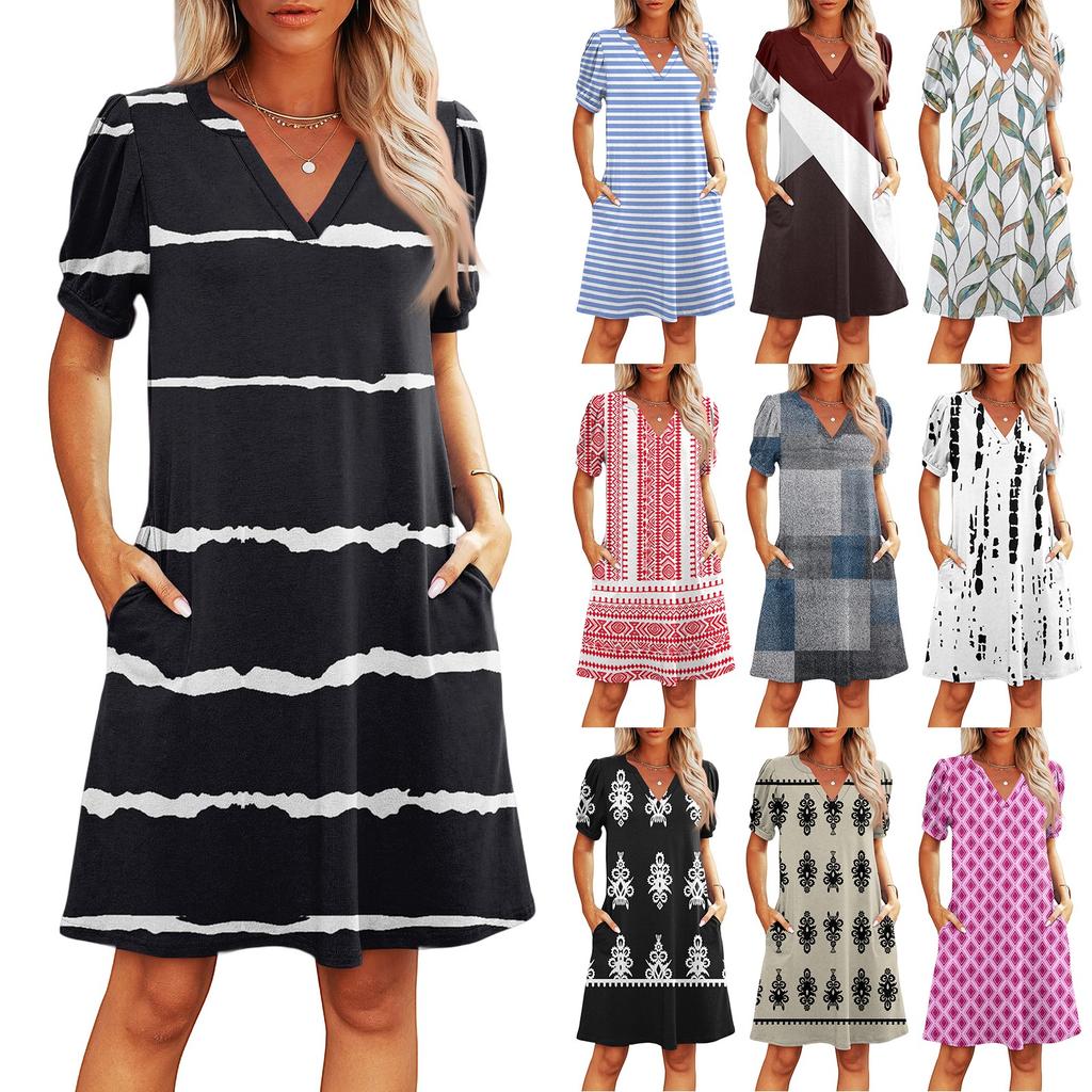 Dámské letní ležérní plážové šaty s výstřihem do V, s krátkým rukávem, pruhované, s geometrickým potiskem