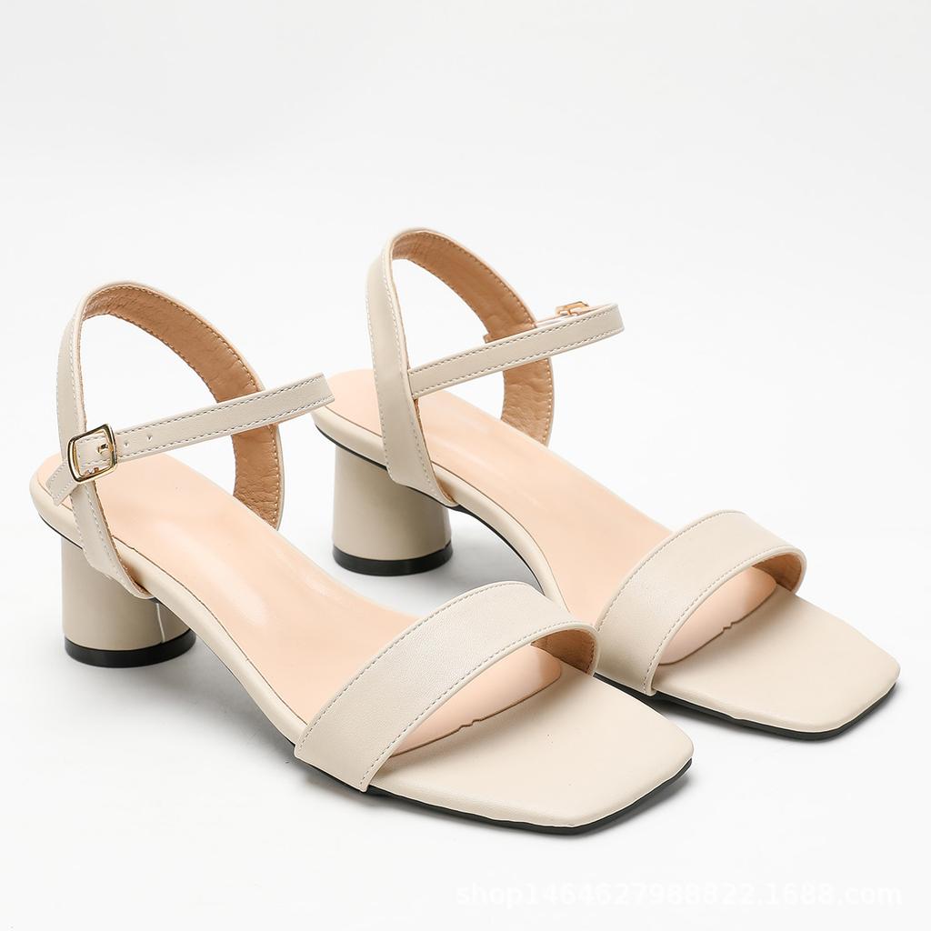 Dámské sandály na vysokém podpatku, čtvercová špička, silný podpatek, otevřená špička, na jeden knoflík, módní, všestranné a elegantní boty na vysokém podpatku
