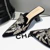 Špičaté poloviční jehlové podpatky léto nové nové čínské těžké průmyslové vyšívání lehké luxusní vyšívané boty ženy