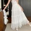 Women's White Lace-Tulle Tiered Cake Midi Skirt - Sweet Slim-Fit A-Line with Versatile Design for All Occasions