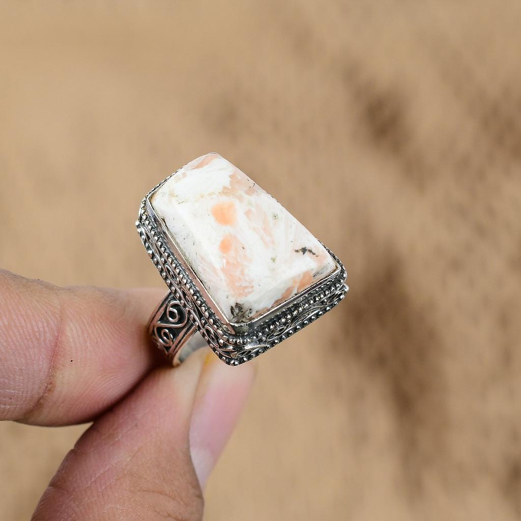 Přírodní Scolecit Drahokam Slib Vintage Prsten Velikost 8 925 Sterlingového Stříbra