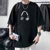Earphone Pattern Men's Oversized Drop Shoulder T-Shirt 100% Cotton Streetwear Tee