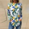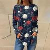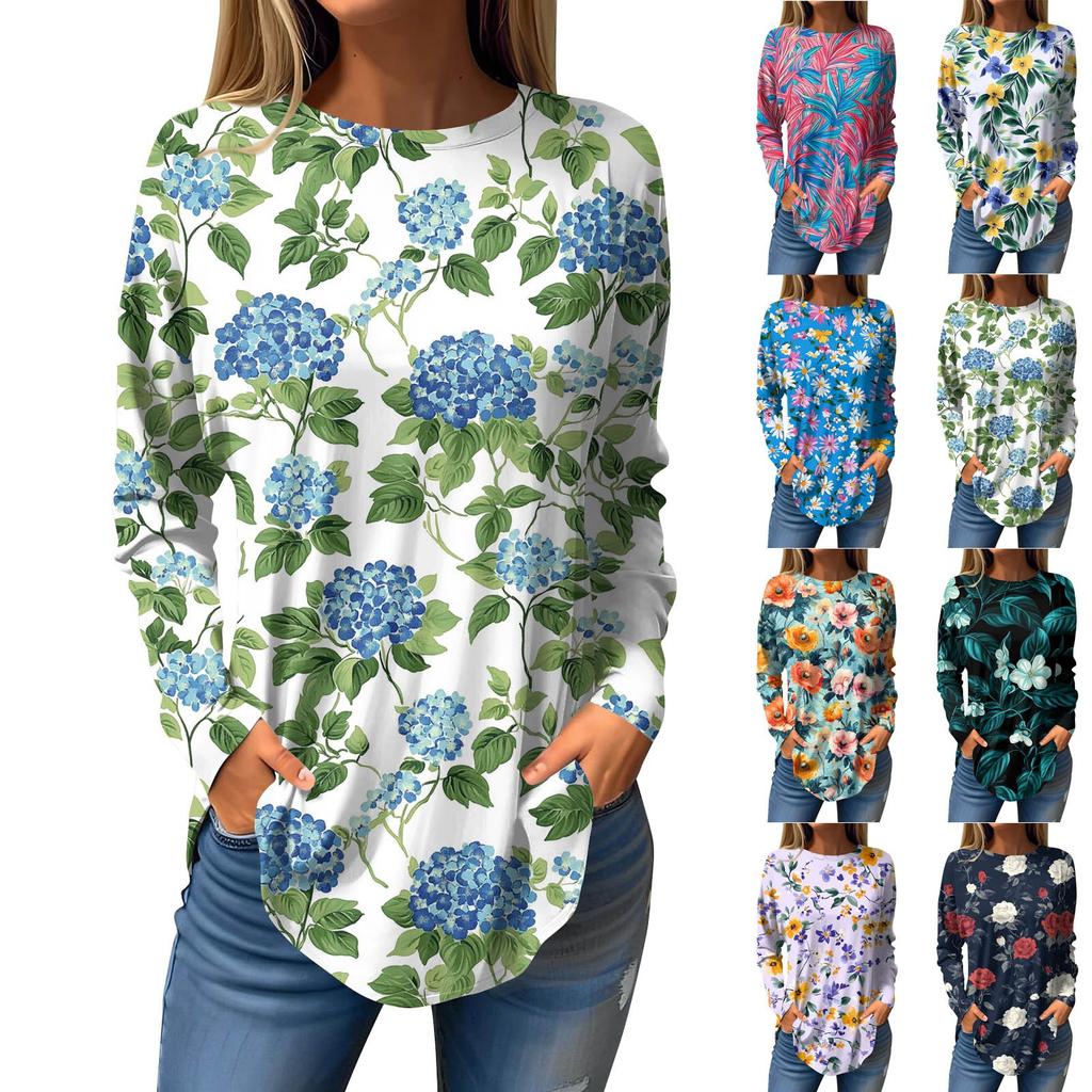 Women's Loose Casual Flower Printed Round Neck Long Sleeved T Shirt Top Pullover Long Sleeved Sweatshirt
