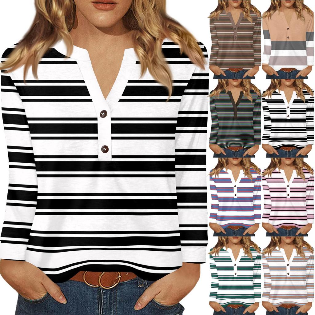 Dámské tričko s potiskem, knoflíky, dlouhý rukáv, denní, víkendová móda, základní, výstřih do V, běžný top