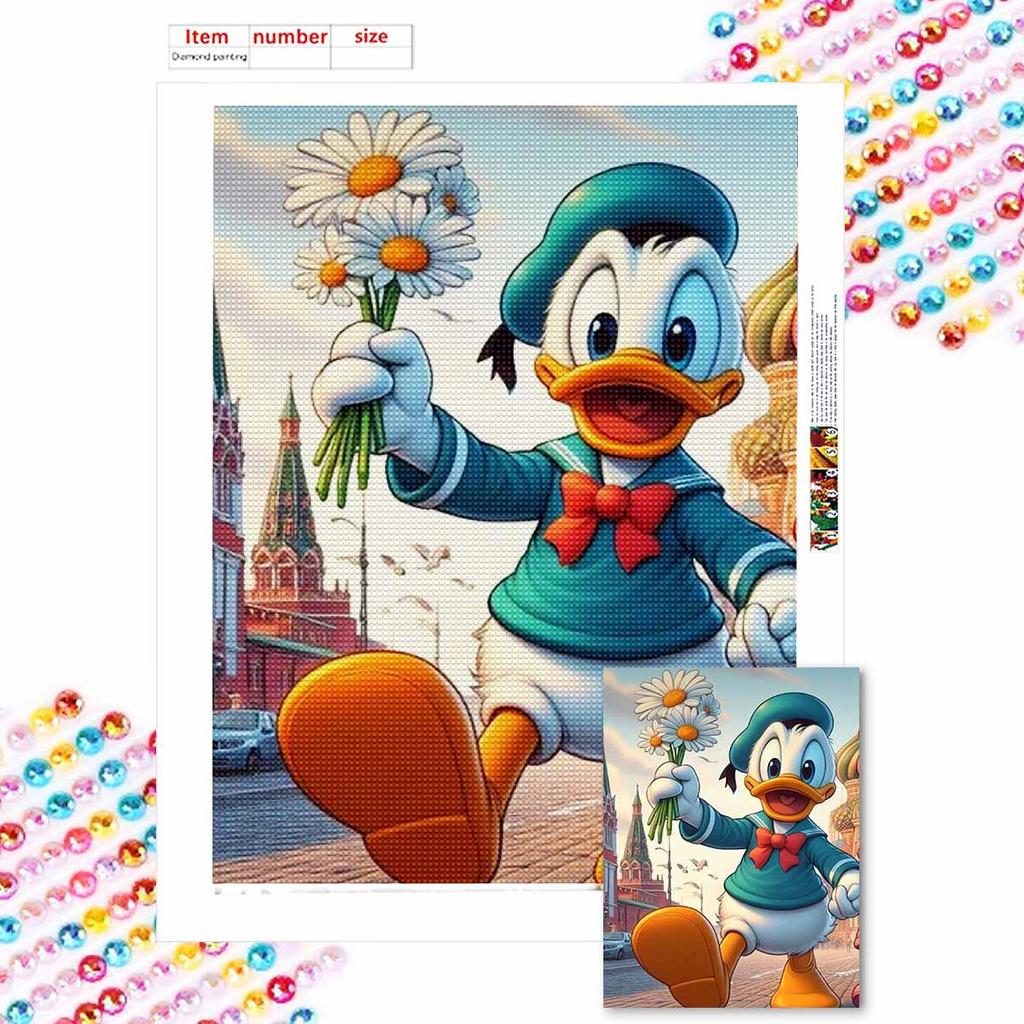 DIY Diamond Painting Donald Duck and Flowers Cross Stitch Kit Mosaic Art Diamond Painting Full Circle Diamond Home Decoration
