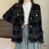 Dámský retro modrý kardiganový svetr s copánkovým vzorem - Volný střih, Podzimní/zimní svrchní oděv, Ležérní a jemný styl.