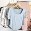 Modal Cotton Women's Grey-Green Loose Short Sleeve Round Neck Top - Soft, Skin-Friendly, and Versatile for Inner or Outer Wear.