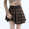 Dámská sukně s vysokým pasem, kostkovaná, plisovaná, áčkového střihu - Retro podzimní/zimní styl, zeštíhlující, zakrývající boky, krátká délka