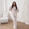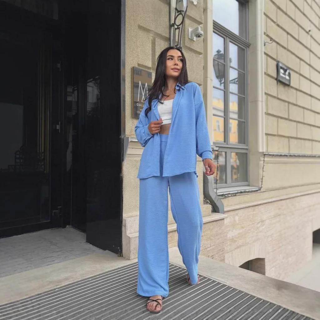This stylish two-piece set is perfect for your autumn wardrobe. Featuring a solid color lapel long sleeve shirt paired with casual pants, it offers a seamless blend of European and American fashion influences. Crafted from high-quality polyester, the set provides both comfort and durability. Its casual style makes it versatile for various occasions, allowing you to effortlessly transition from a day at the office to a casual evening out. Embrace the season with this chic and comfortable ensemble.