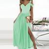 Summer V Neck Print Cold Shoulder High Slit Maxi Dress Elegant Long Evening Sexy Party Dress