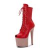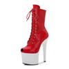 New 17cm thin heel glossy low boots sexy pole dance boots fashion catwalk super high heel dance shoes trend