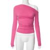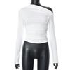Elevate your autumn wardrobe with this chic, one-shoulder, ruched long sleeve cropped top. Crafted from high-quality polyester, it ensures a comfortable fit and a stylish silhouette. The solid pattern offers versatility, making it easy to pair with various bottoms for both casual and more polished looks. With its unique design and long sleeves, this top is perfect for transitioning between seasons while maintaining a modern and fashionable appearance.
