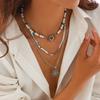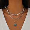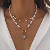 Court retro devil's eye necklace, sun pendant irregular pearl multi-layered necklace