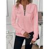 Elegant Women's Long Sleeve Zip-Up Baseball Collar Sweatshirt with Faux Pockets - Textured Cable Knit