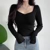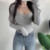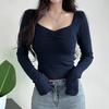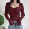 Dámská móda Ležérní jaro podzimní jednobarevné halenky a košile s dlouhým rukávem a výstřihem do V