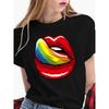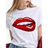 Fashion Sexy Red Lip Women T Shirt Funny Kiss Lips Print Ladies Casual Basis O-collar Short Sleeves Female Tops Tees