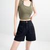 Black American Denim Shorts for Women In Summer New High-waist Loose A-line Slimming and Fat Mm Large-size Wide-leg Pants