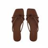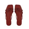 Lambskin~ Retro thin strap thick heel slippers women's summer wear simple beach pinch herringbone cool slippers