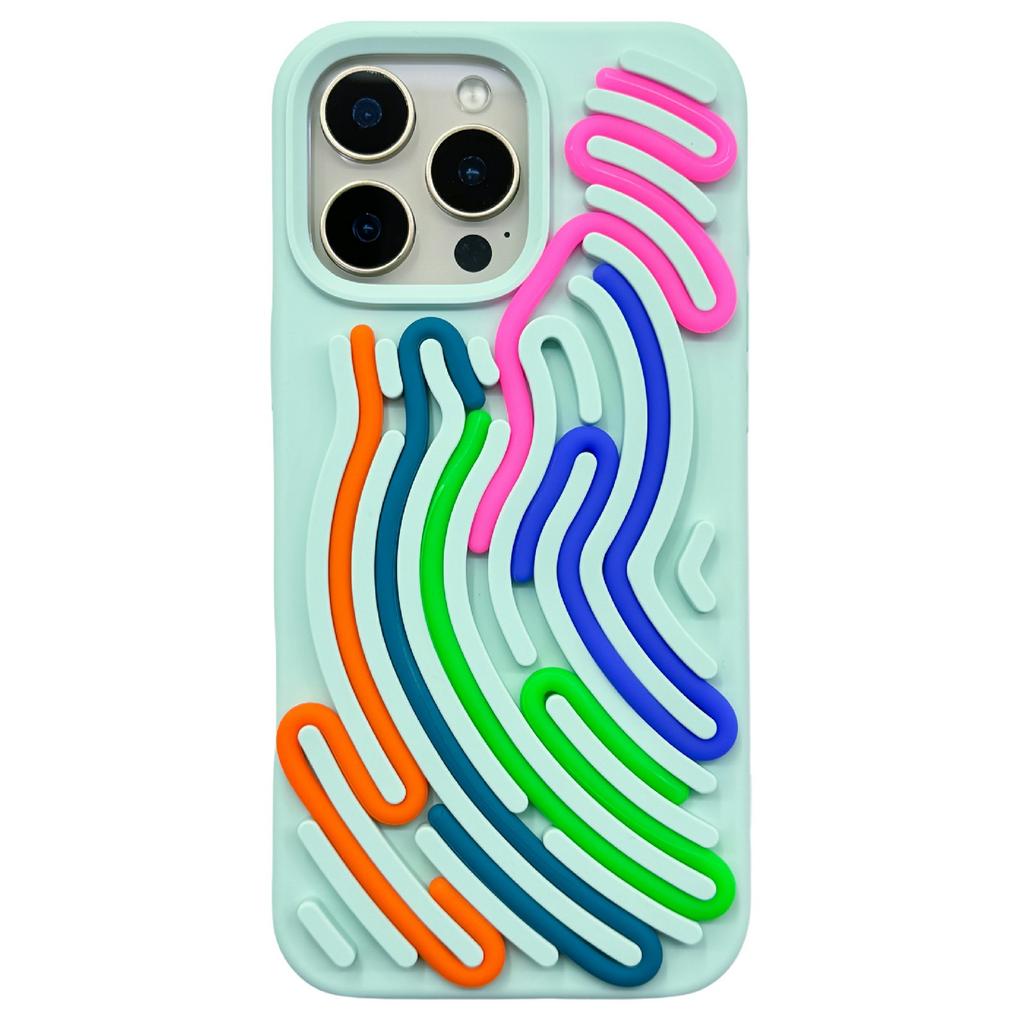 For iPhone 16 Pro Case 3D Stress Relief DIY Colorful Bar Silicone PC Phone Cover Arc Stripe