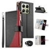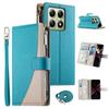 Pro Realme 14T 5G Pouzdro Peněženka na zip Kožený skládací kryt na telefon s barevným prošíváním a popruhy