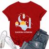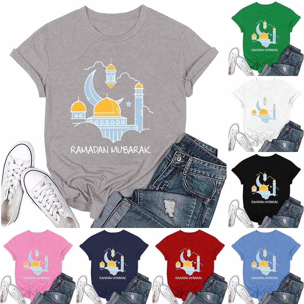 Girls casual loose printed T-shirt round neck pullover short sleeve top