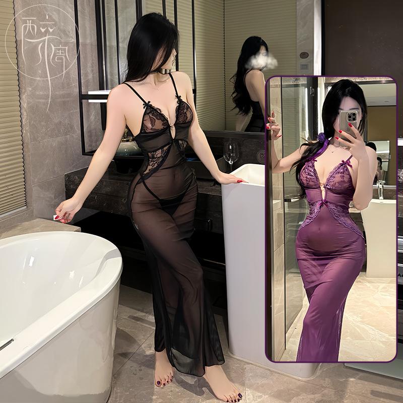 Large size fun purple sexy suspender perspective dress free of temptation slim fit tight fight