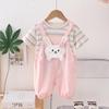 Dodejte letnímu šatníku vašeho malého rošťáka hravý nádech s touto rozkošnou soupravou, která obsahuje pruhované tričko s krátkým rukávem a ladící lacláče zdobené roztomilým motivem králíčka.. Tato sada, vyrobená z měkké, prodyšné bavlny, zajišťuje pohodlí a styl pro teplé dny.. Tento obleček, ideální pro neformální vycházky nebo hraní, nabízí okouzlující směs šarmu a praktičnosti.