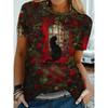Women's cat printed T-shirt, oversized loose casual wear, fashionable and versatile