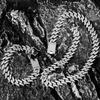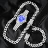 Hip Hop 3pcs Cuban Chain Watch for Men Miami Curb Iced Out Paved Rhinestones Rapper Cuban Necklace Suit Watch Bracelet Jewelry