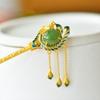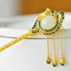 Retro smaltovaná zelená páví střapec tiára Starozlaté řemeslo Přírodní Hotan Jade vlásenka Hanfu vysoce kvalitní vlasový šperk doplněk