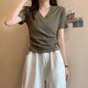 Milk silk, cross v-neck short-sleeved t-shirt for women's summer slim-fitting and thin short models