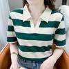 Striped long-sleeved t-shirt women's pure cotton spring and autumn 2025 new thin POLO collar with bottoming shirt temperament top