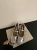 Inner height increase Mary Jane shoes women's spring new bow square head silver splicing flat ballet shoes