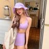 2025 Korean Bandeau Split Swimsuit - Solid Color, Sexy Flat Leg Trunks for Women