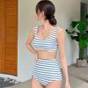 Women's Striped Double Strap High Waist Bikini - Perfect for Beach Vacations