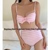 High-Waisted Striped Korean-Style Bikini - Two-Piece Swimwear for Small Busts