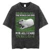 Amare Box No Thoughts Head Empty Japanese T-shirt Capybara Vintage Washed T Shirt Men Women Loose Short Sleeve Tees
