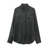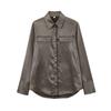 Satin Texture Long Sleeve Shirt with Pocket Decoration - 2024 European & American Fashion for Women