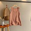 Pozvedněte svůj letní šatník tímto krásně navrženým tílkem.. Tento top, ušitý z měkké směsi bavlny a lnu, nabízí dokonalou kombinaci pohodlí a prodyšnosti.. Jednobarevný vzor a kulatý výstřih poskytují jednoduchý, ale elegantní vzhled, zatímco volný střih nabízí zeštíhlující efekt.. Díky designu bez rukávů je ideální volbou pro teplé počasí, zajišťuje, že zůstanete v chladu a styloví po celou sezónu.. Tato tílka je ideální jak pro neformální vycházky, tak pro formálnější příležitosti, a je všestranným doplňkem každé kolekce.