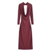 Elevate your autumn wardrobe with this elegant backless long dress, featuring a European and American style. Crafted from high-quality polyester, this slim-fit design beautifully contours the body, offering a chic and sophisticated look. The dress showcases exquisite pleating details, adding a touch of timeless glamour to any occasion. Perfect for evenings out or special events, this dress combines modern style with classic elegance, making it a standout addition to your collection.
