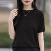 Spring New Thin Fine-spun Fine Wool Openwork Knitted Short-sleeved Top