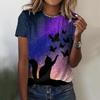 Summer Round Neck 3D Colorful Butterfly on Black Background Print Top Fashionable Casual Short Sleeved Women's T-shirts