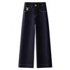 These wide-leg slimming jeans for women offer a stylish and sporty look, perfect for the spring and fall seasons. Designed with a high waistline, they provide a flattering fit that enhances your silhouette. The jeans are enhanced with practical pockets that add a touch of functionality to the fashionable design. Crafted from quality materials, these jeans deliver comfort without compromising on style, making them a great choice for those who love a blend of chic and sporty in their wardrobe.