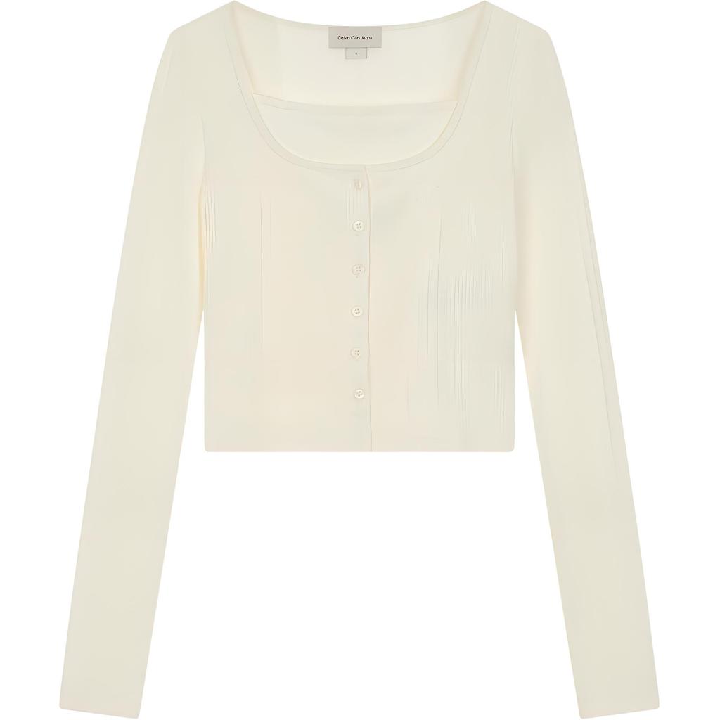 Calvin Klein Short Slim Fit Solid Long Sleeve Casual Set Women sets White J225096-YBI