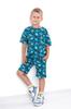 Klučičí set (Tričko + kraťasy) vyrobený z dvojitě pletené látky je perfektní volbou pro léto a teplé jarní dny. Jasně potištěné tričko má volný střih, který umožňuje svobodu pohybu, ideální pro každodenní nošení.. Kraťasy s měkkým elastickým pasem poskytují pohodlí a lehkost při aktivní hře nebo procházkách.. Tkanina je prodyšná, šetrná k pokožce a po vyprání drží tvar.. Stylový a praktický outfit pro vašeho malého dobrodruha!