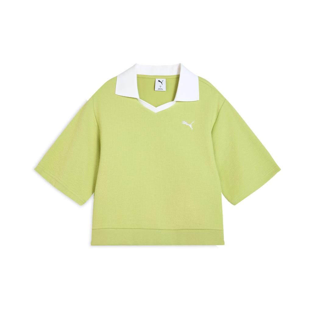 Puma Collective Femme 2.0 Polo Retro Sports Casual V Embroidered Logo Short Sleeve Polo Women tops Pistachio-Green 631717-37