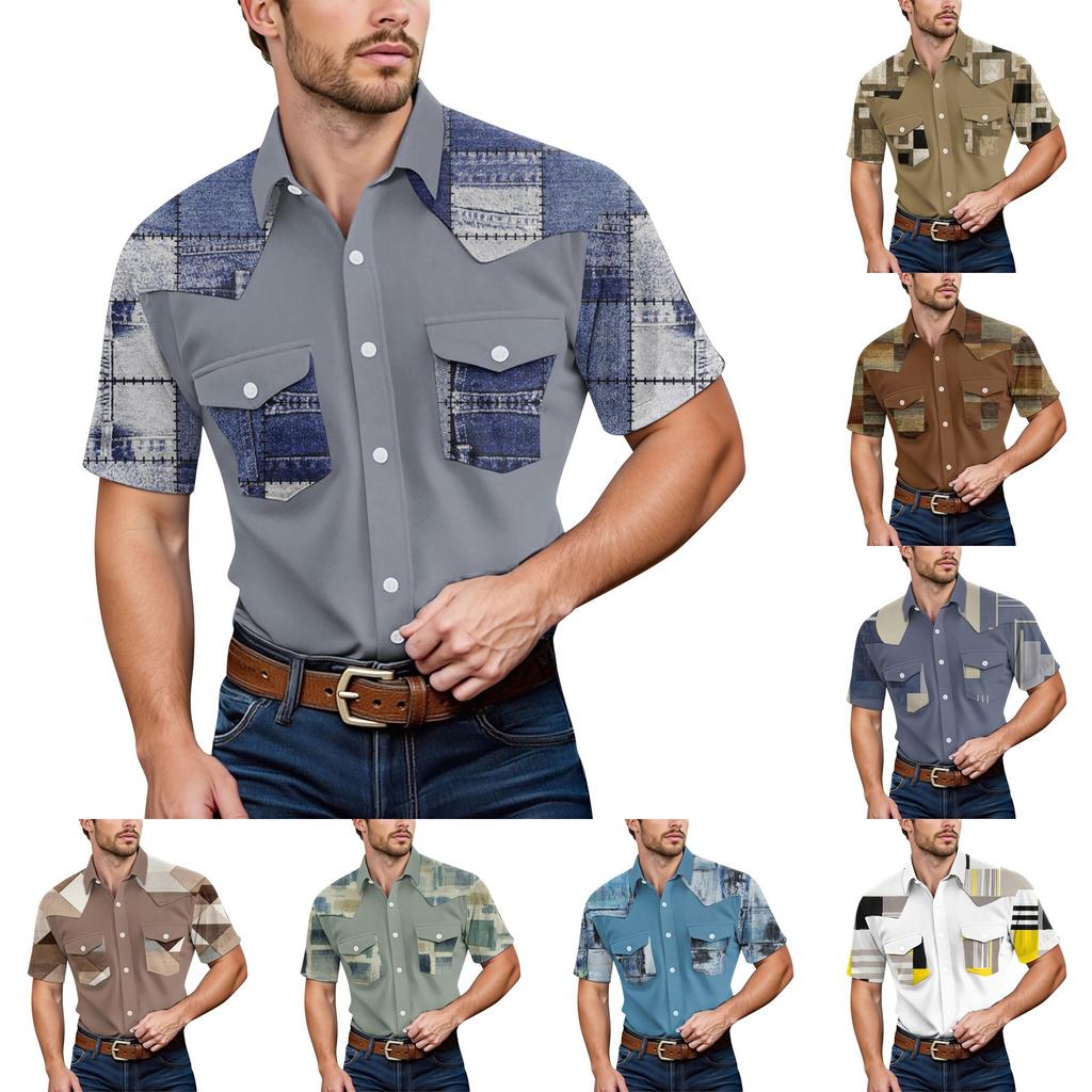 Pánské módní s klopou a krátkým rukávem ležérní top délky po ramena