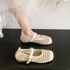 Letní nové sandály se čtvercovou špičkou, s mělkým výkrojem, s měkkou podrážkou, s nápisem, na ploché podrážce, prodyšné, síťované, ležérní boty Mary Jane pro ženy